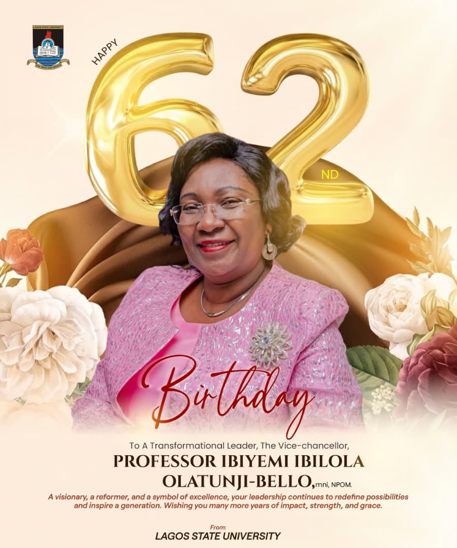 Distinguished Professor Ibiyemi Ibilola Olatunji-Bello, mni, NPOM Vice-Chancellor, Lagos State University. On this day, the 23rd of April 2026, the University Management, Senate, staff, students, and the entire University community proudly celebrate an exceptional leader, distinguished scholar, and visionary administrator: Distinguished Professor Ibiyemi Ibilola Olatunji-Bello, mni, NPOM, the Vice-Chancellor of Lagos State University. Your tenure […]
